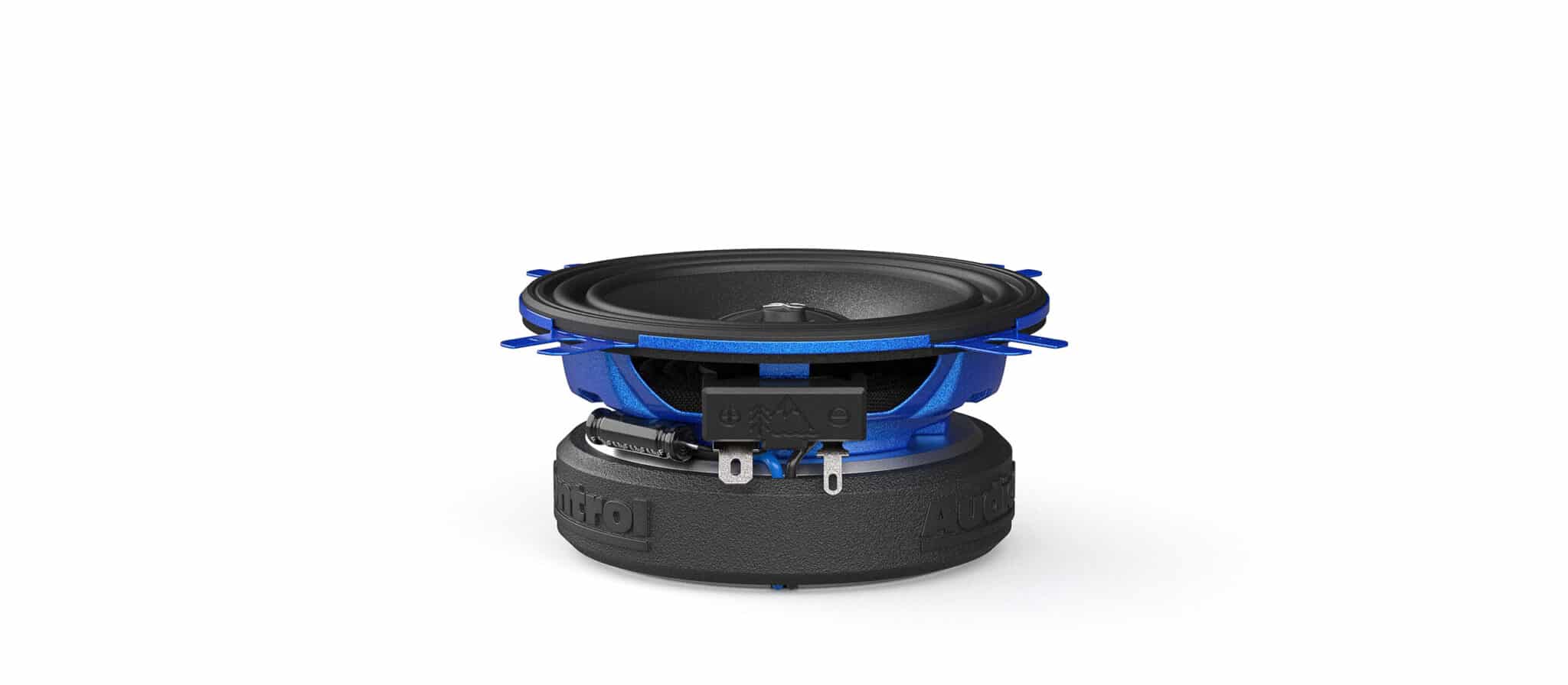 - Koncentryczna konstrukcja punktowego źródła dźwięku zapewniająca płynne przejście między średnimi a wysokimi tonami