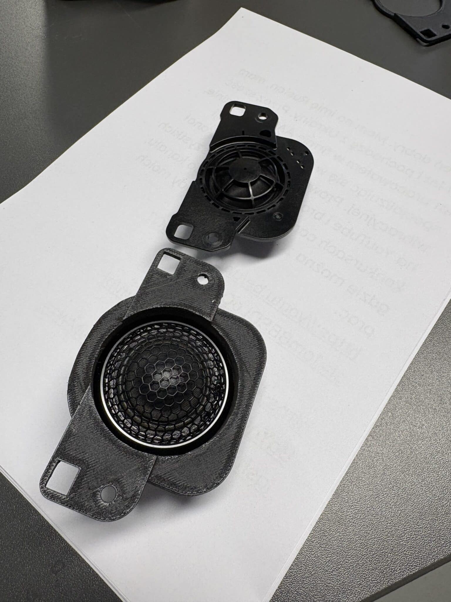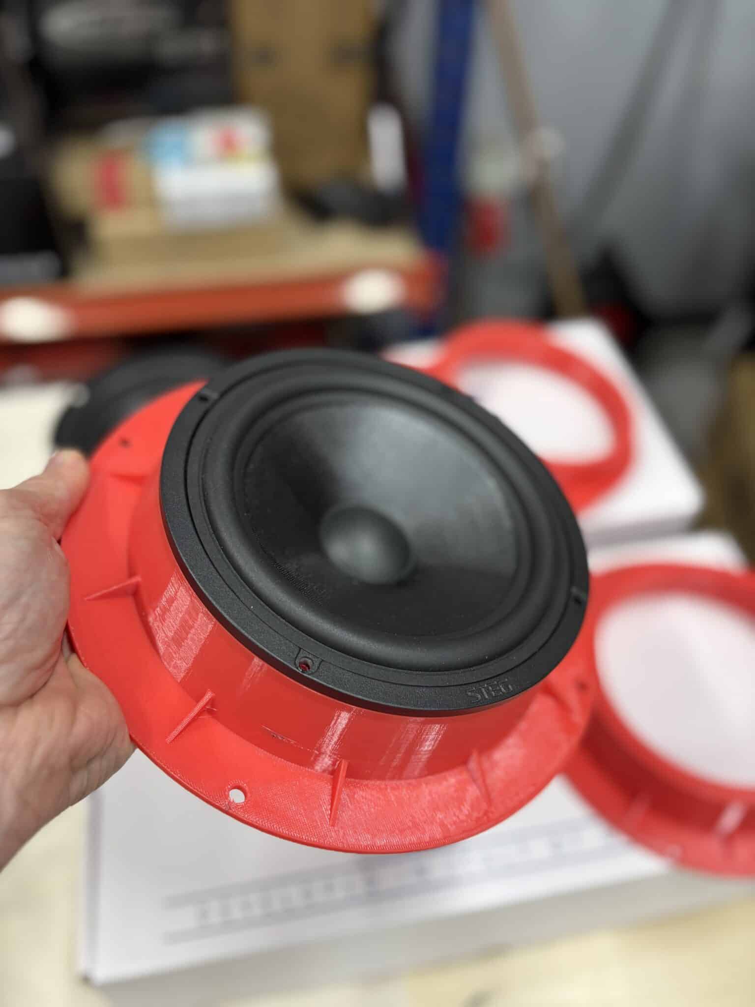 Wszystkie mocowania i dystanse głośnikowe od A do Z: zaprojektowane i wydrukowane u nas na miejscu, idealnie dopasowane do auta