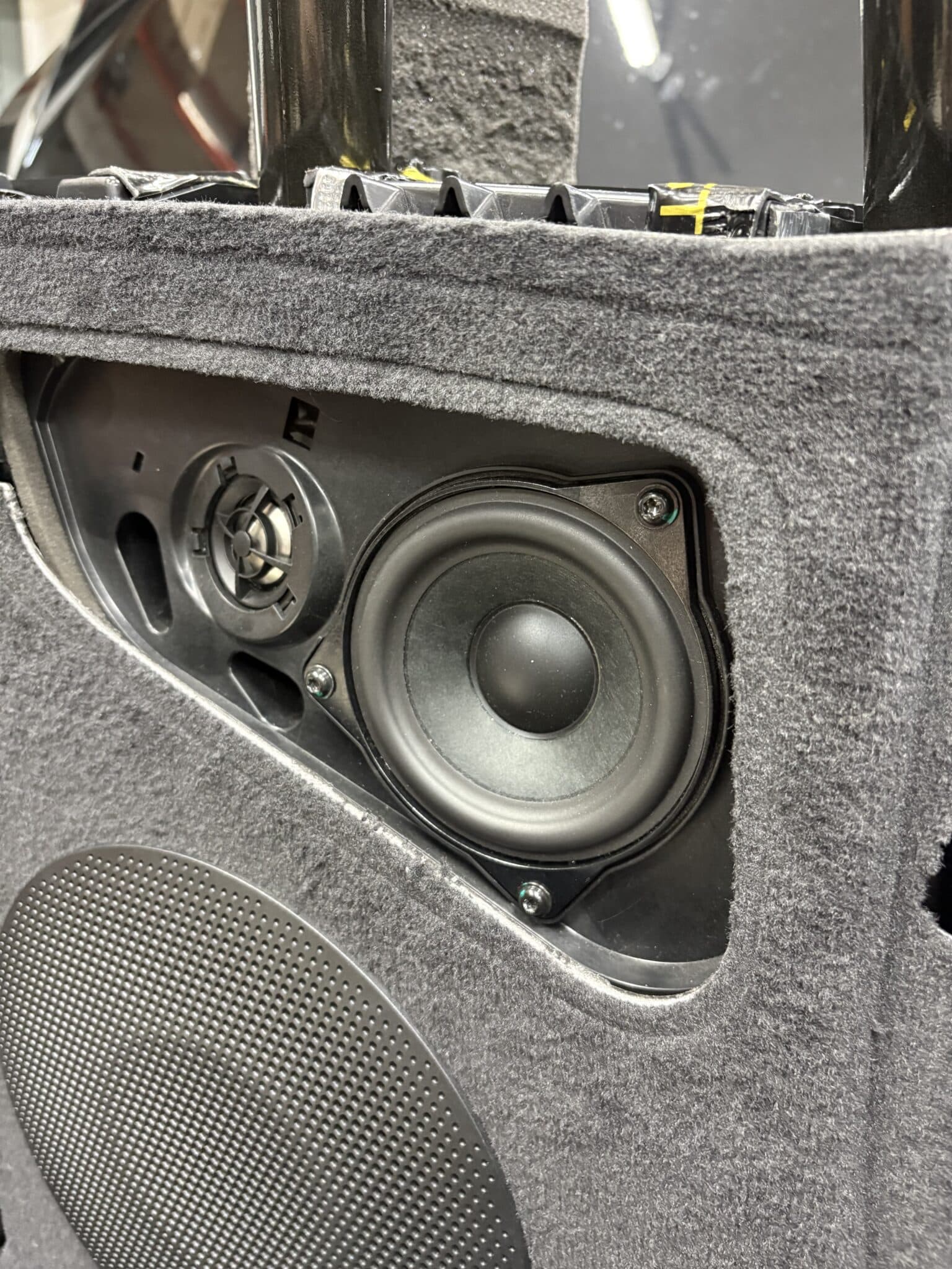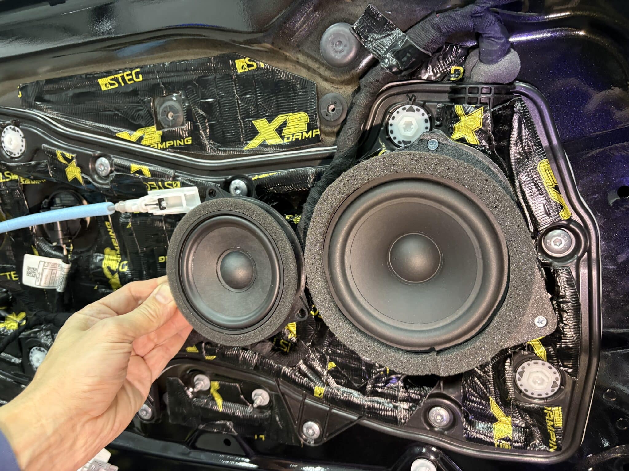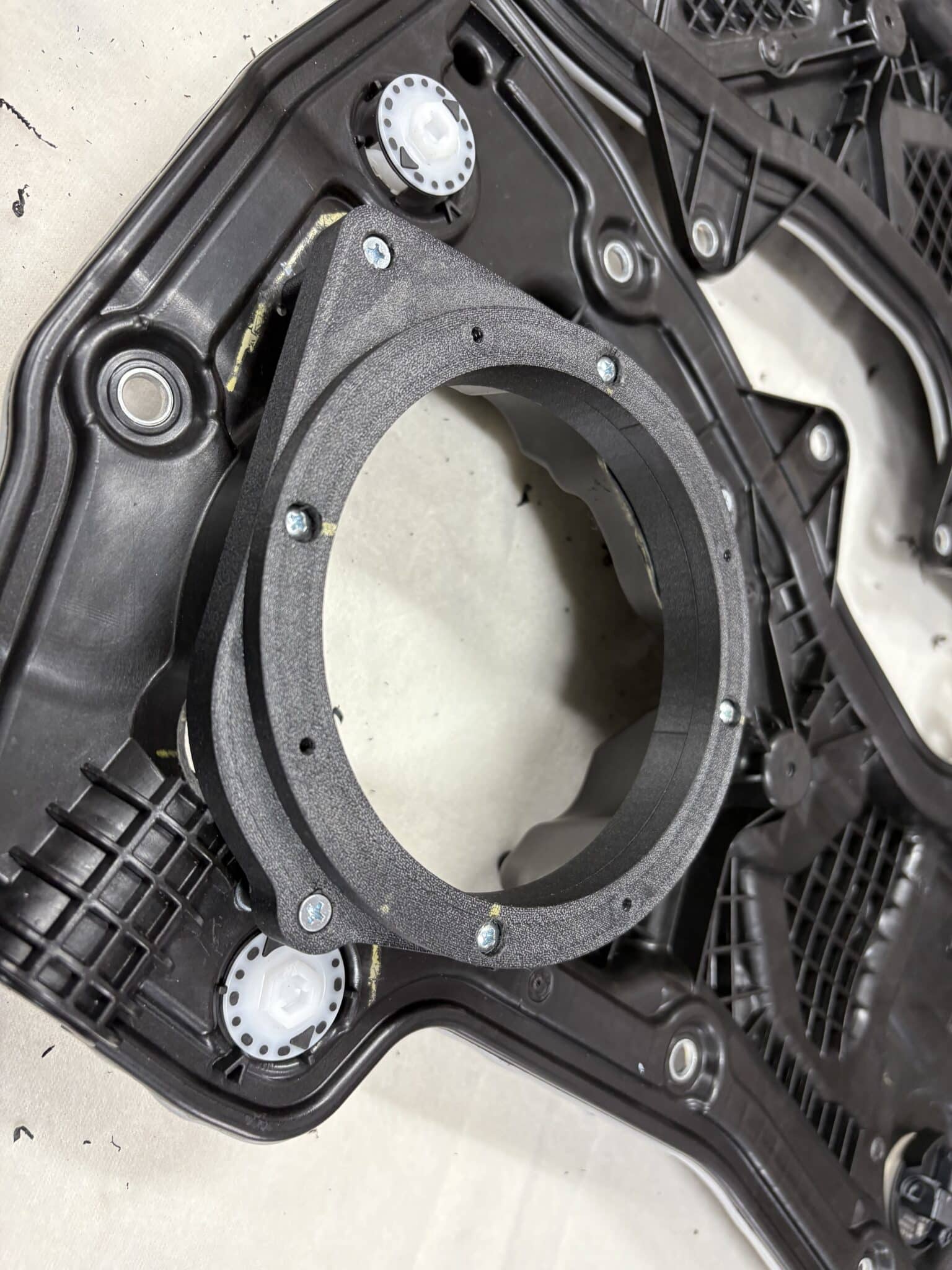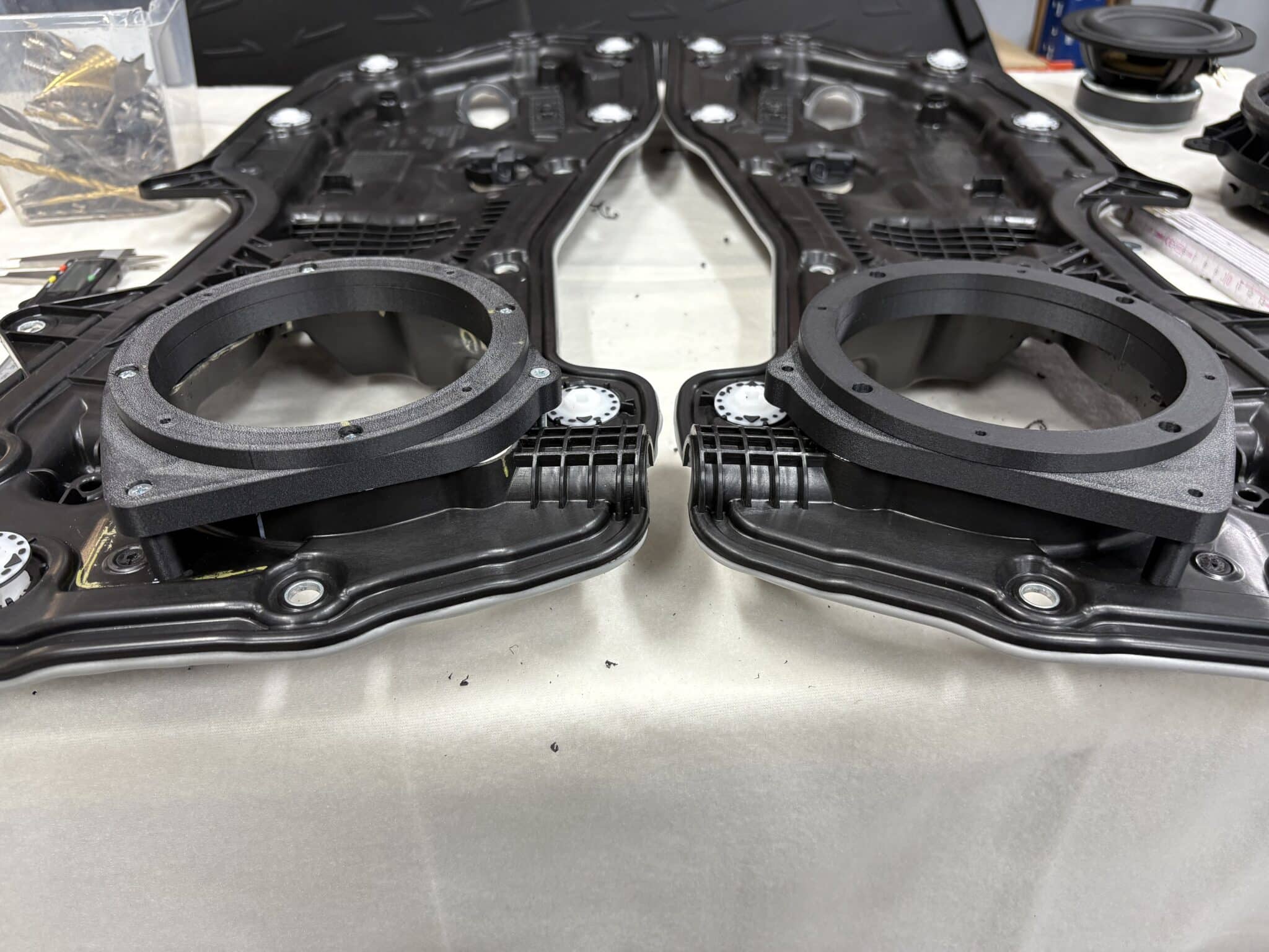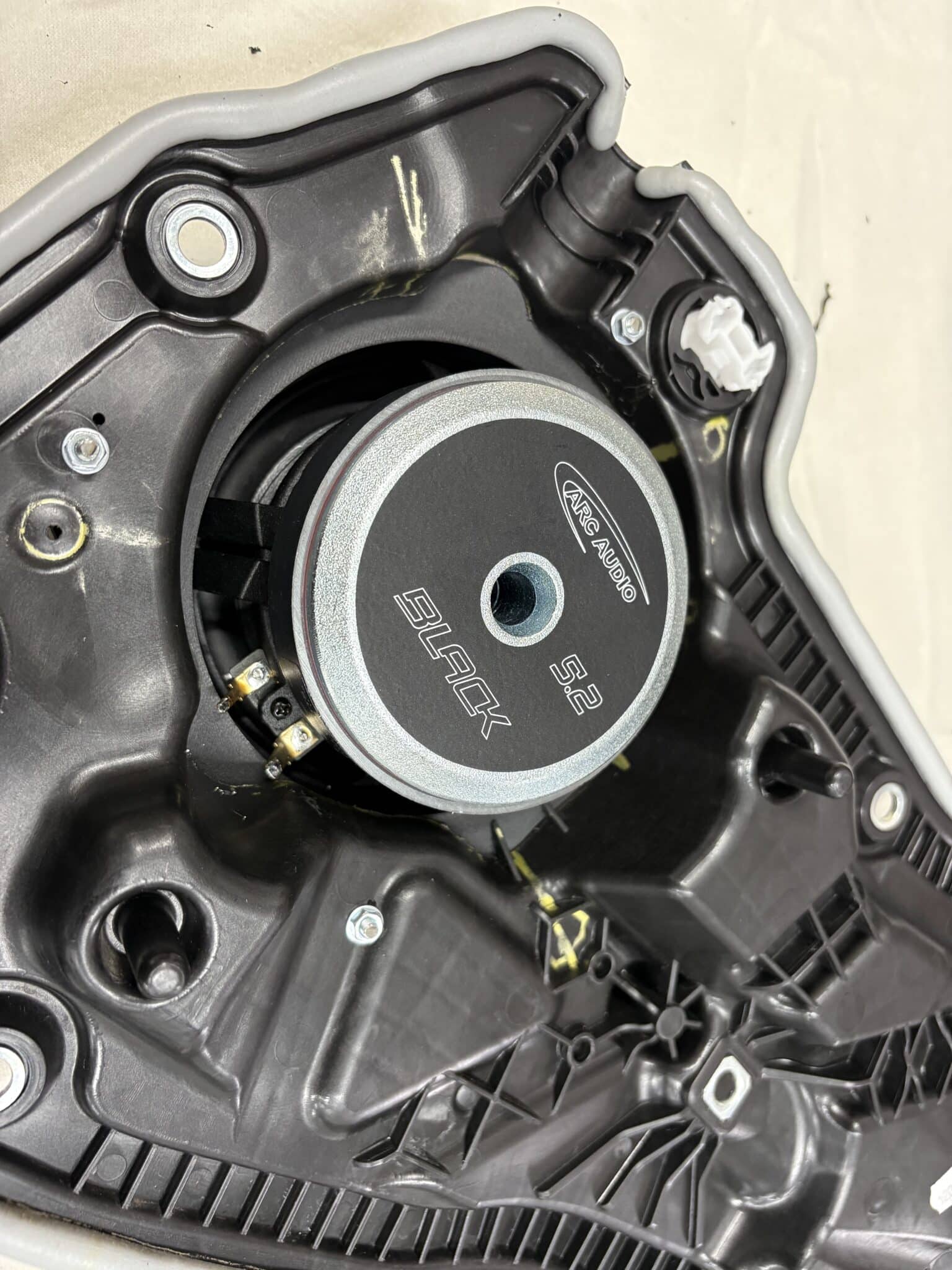 • 13 cm woofery ARC Audio BLACK 5.0 na dedykowanych, drukowanych adapterach – konkretny, kontrolowany mid-bass