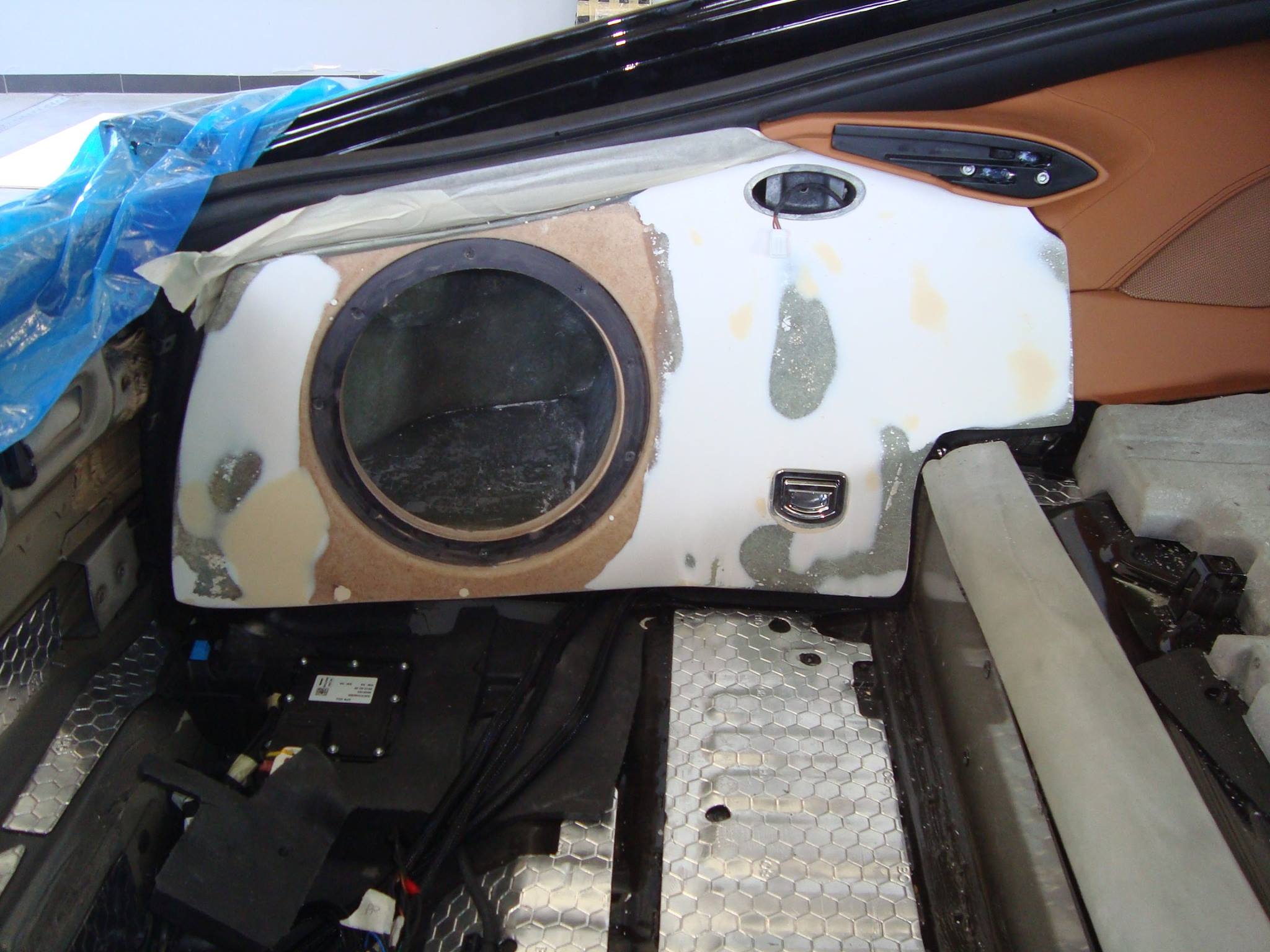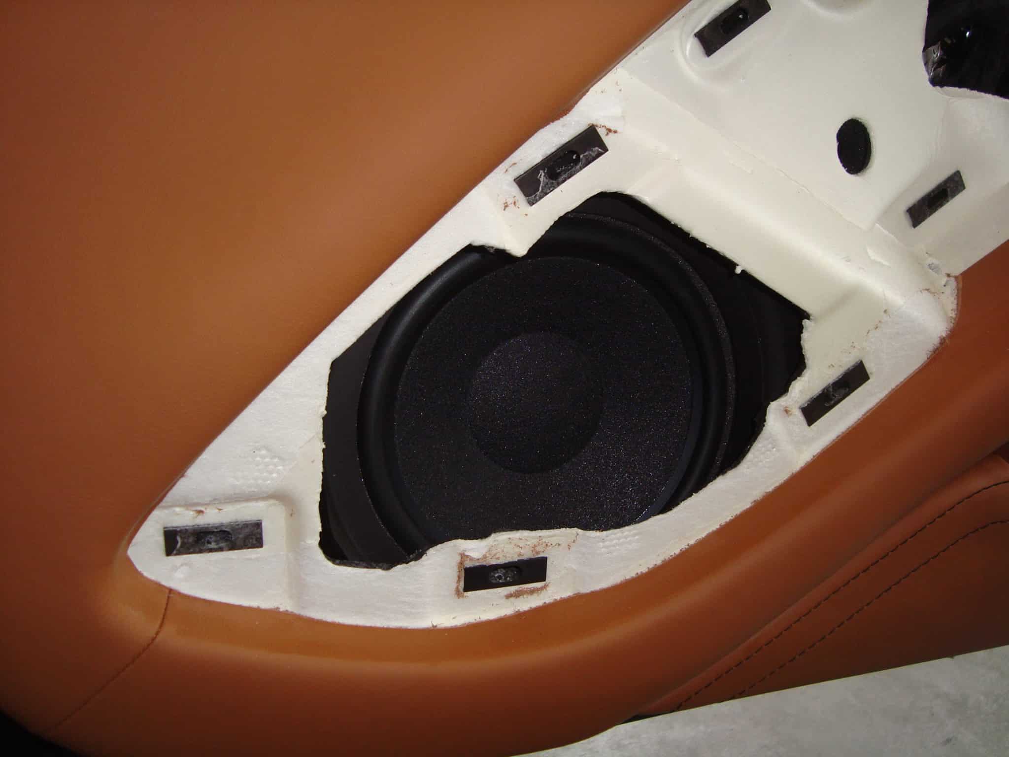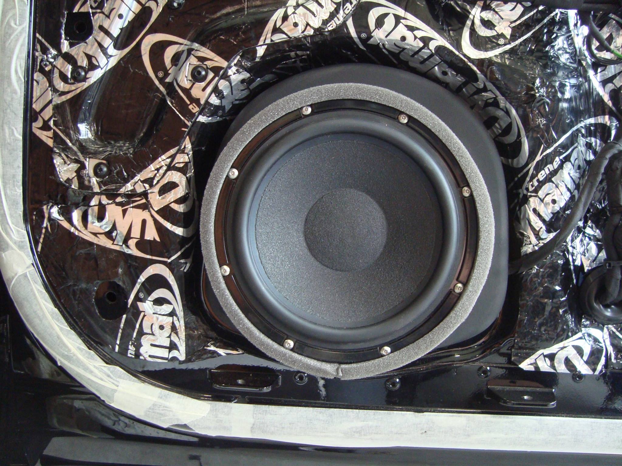 W pierwszej kolejności zaczęliśmy od przygotowania drzwi pod wymagające woofery Brax-a, następnie w fabryczne plastikowe osłony lusterek wkomponowaliśmy wysokotonowe 28mm przetworniki marki Brax.