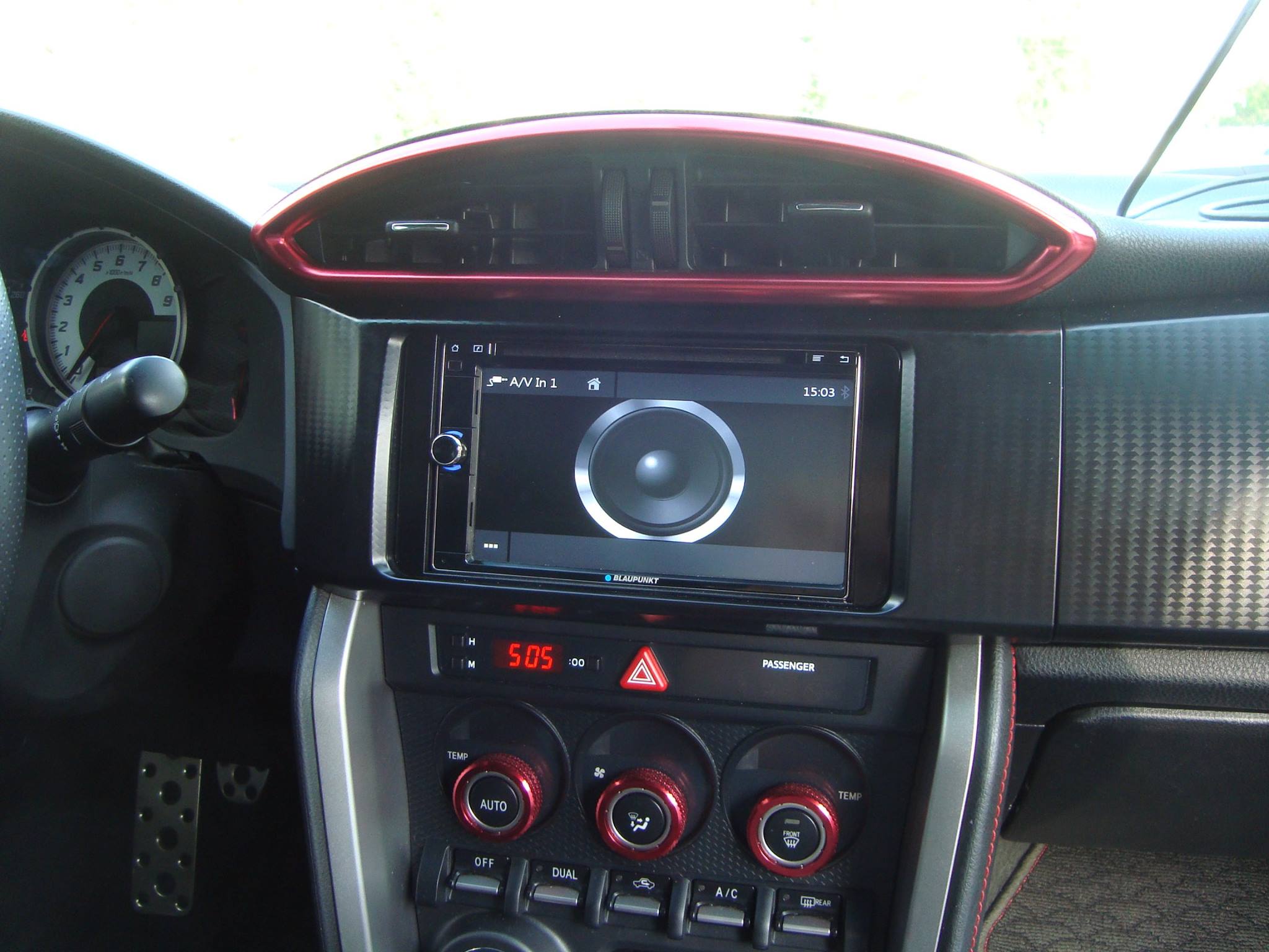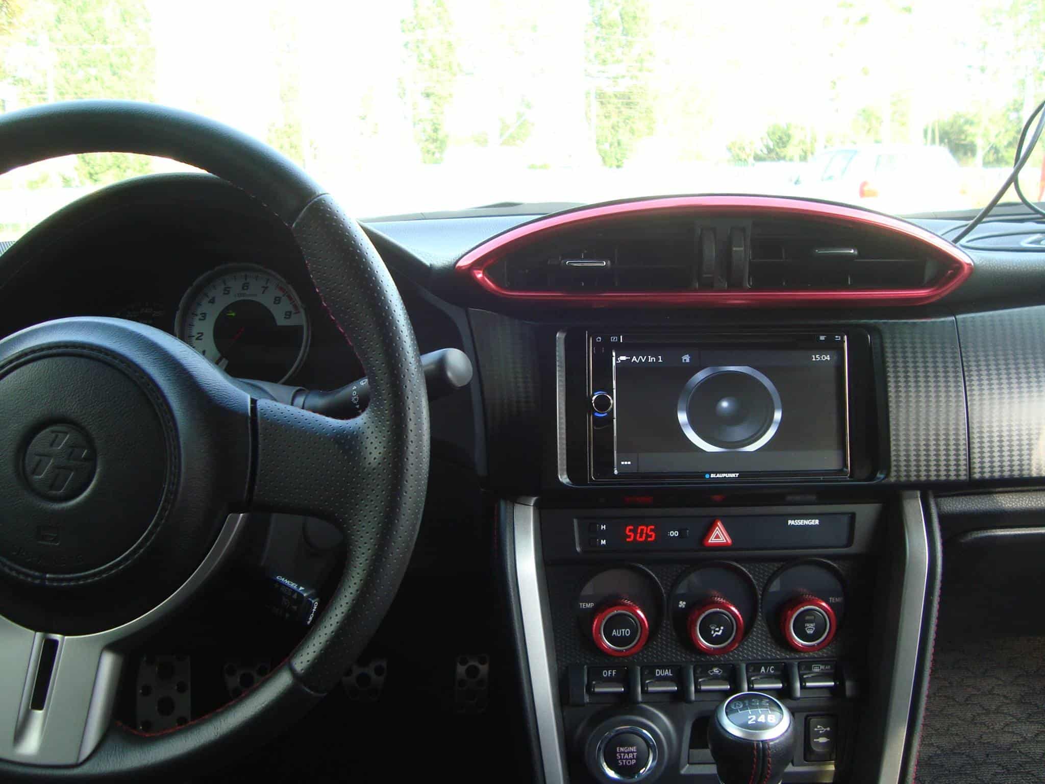W tym modelu Toyoty GT86 z limitowanej serii TRD zainstalowaliśmy stację multimedialną Blaupunkt Cape Town, głośniki Morel w wygłuszonych drzwiach napędzane wzmacniaczem Mosconiego i kamerkę cofania Ampire.