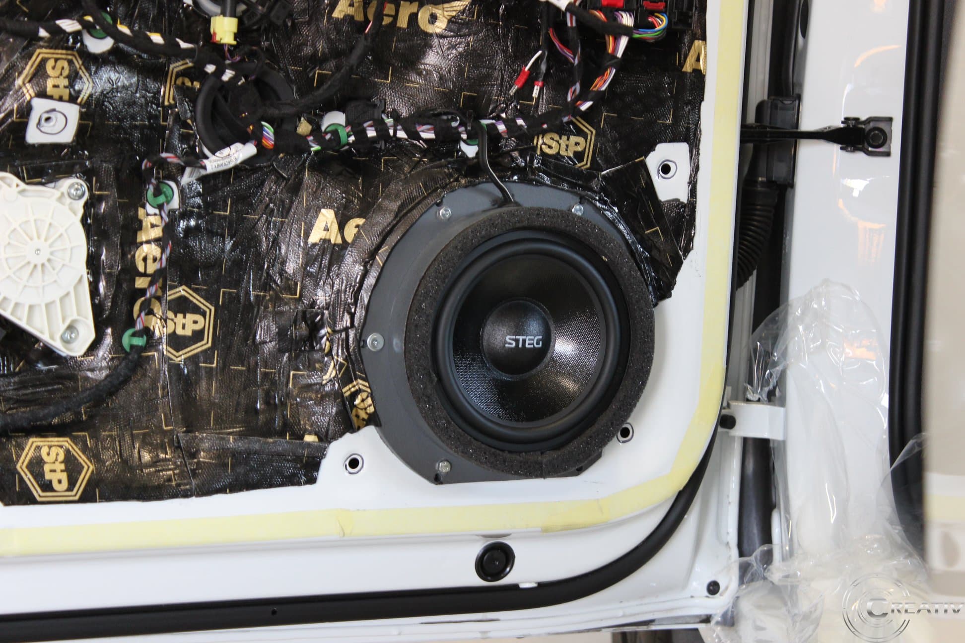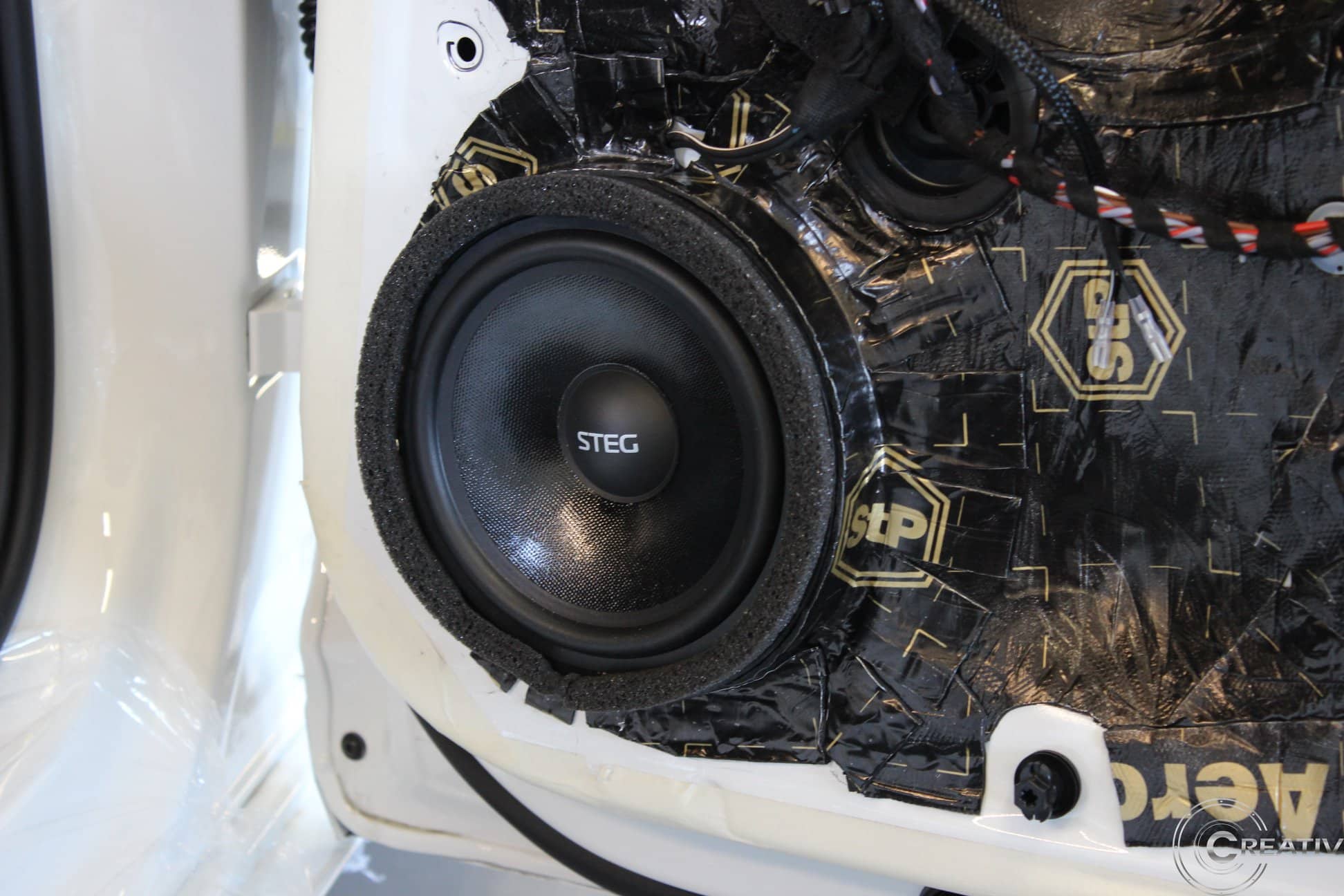 Instalacja audio stworzona przy zachowaniu fabrycznego wyglądu wnętrza.
