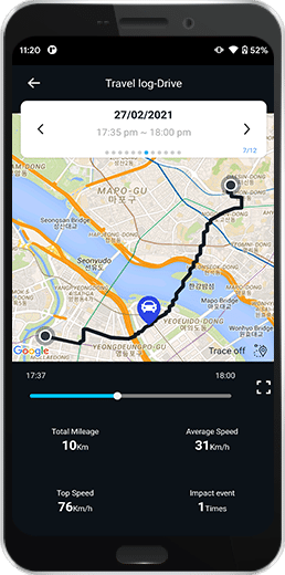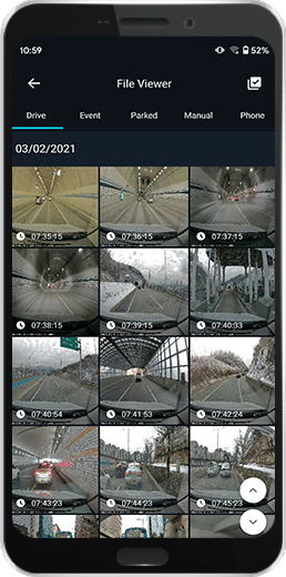 Tryb nadzoru parkingowego jest automatycznie aktywowany po wyłączeniu zapłonu i rejestruje materiał wideo w przypadku wykrycia ruchu lub nagłych wstrząsów czy kolizji przez wbudowany czujnik G-sensor. Pliki z nagraniami zdarzeń mogą być przydatne jako dowód w sytuacjach takich jak kolizje typu „uderz i uciekaj”, gdy nie ma Cię przy pojeździe.