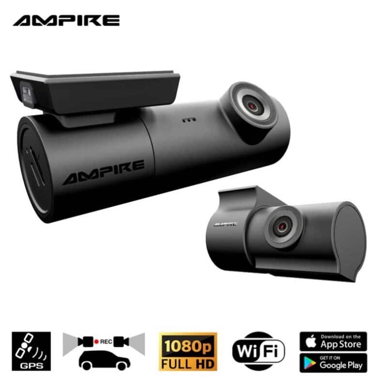 Rejestrator jazdy dwukanałowy z kamerami na przód i tył.